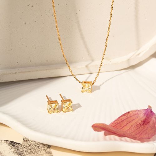LançamentoConjunto Brinco e Colar Trillion com Cristal Paraíba e Zircônias Brancas 50cm - Banho de Ouro 18k