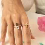 O kit com 2 anéis Formas é puro charme! Com cristais Morganita, Peridoto e Topázio Fumê no banho de ouro 18k, eles combinam cor, brilho e elegância. Um duo moderno e versátil, perfeito para compor looks sofisticados.