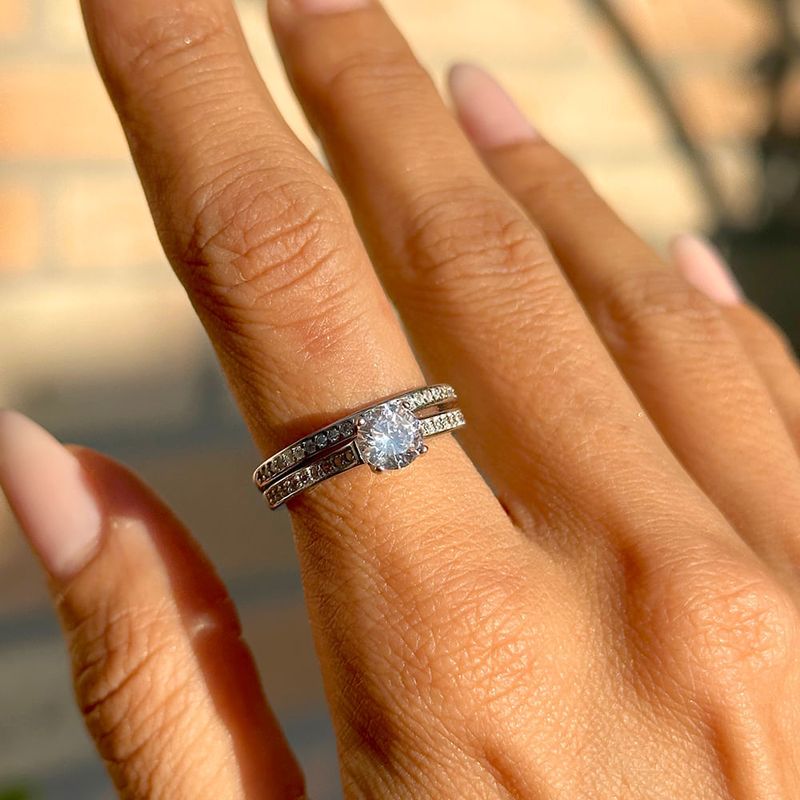 O kit em Prata 925 combina dois anéis perfeitos: um solitário elegante e um aparador cravejado de zircônias brancas. O brilho das pedras valoriza o design moderno e sofisticado, permitindo usar juntos ou separados. Uma peça versátil que une charme e autenticidade.