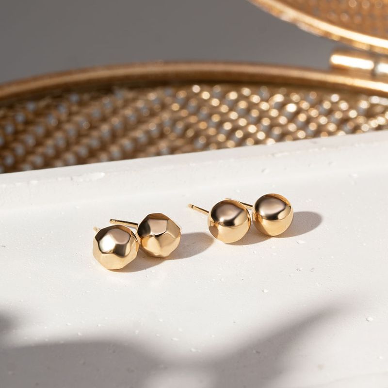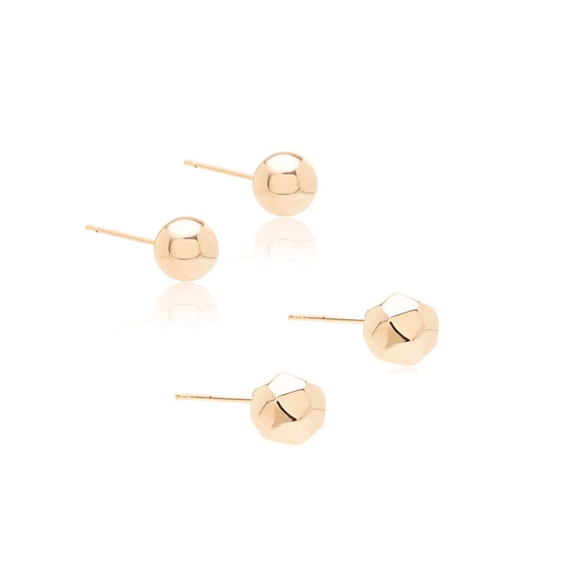 Kit com 2 Pares de Brincos 8mm Liso e Facetado - Banho de Ouro 18k