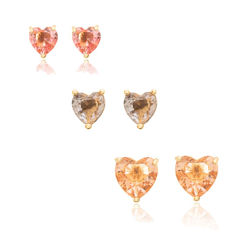 O kit com 3 pares de brincos de Corações é puro charme e cor! Banhado a ouro 18k, traz cristais em tons de lavanda, pink e morganita, que refletem leveza e feminilidade. Delicados e radiantes, os corações brilham com um toque romântico e sofisticado. Um trio encantador que combina com todos os estilos e ocasiões!